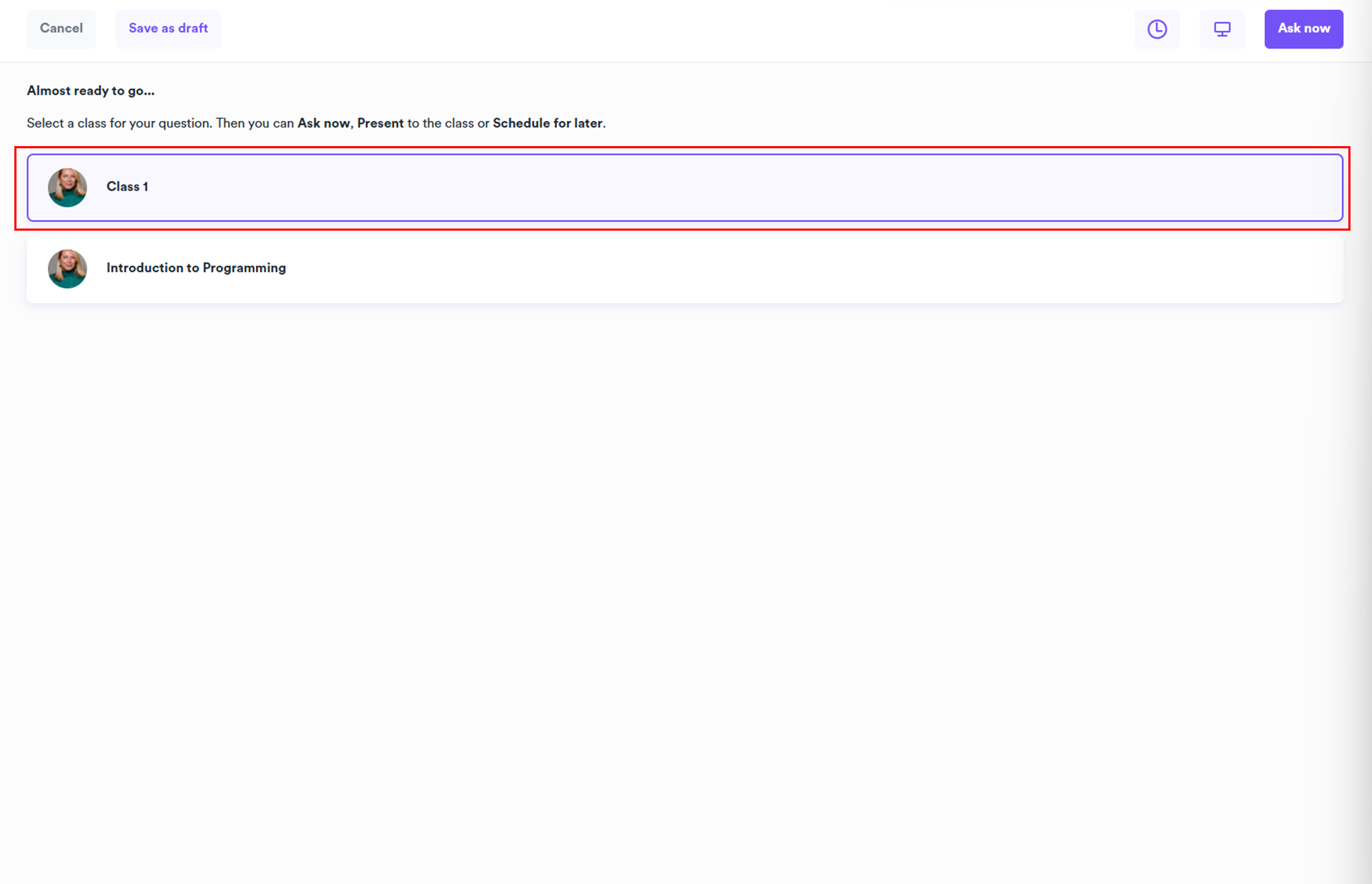 Then, choose the class you’d like the question to be assigned to (e.g. “Class 1”) to assign this question to.