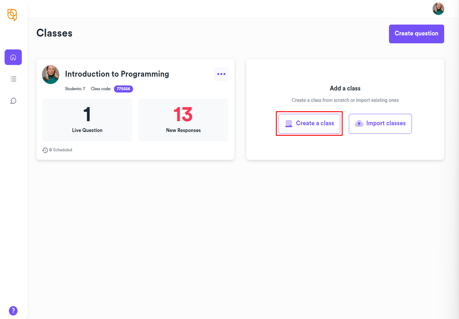 - Click Create a class.