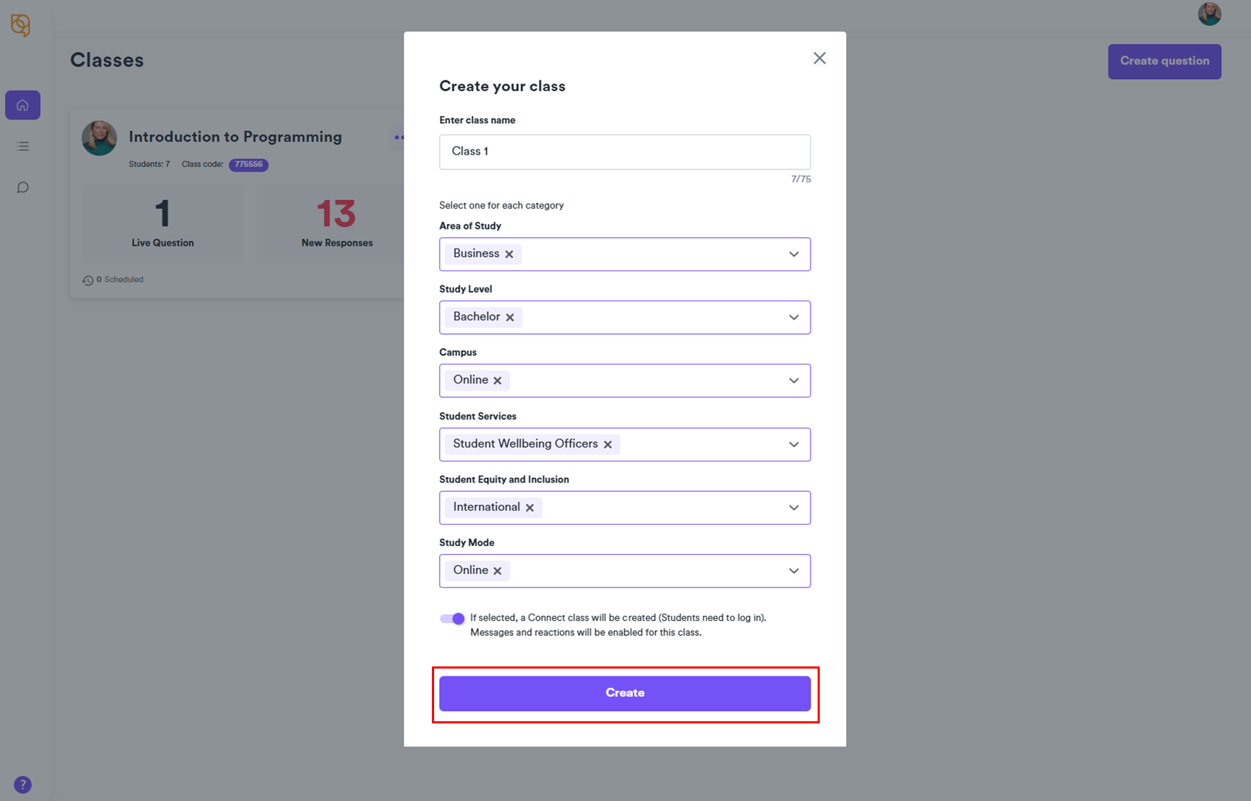 Before creating a class, we recommend quickly considering what kind of class you would like to create – a Connect or GO class. For most instances, we would recommend Connect classes.