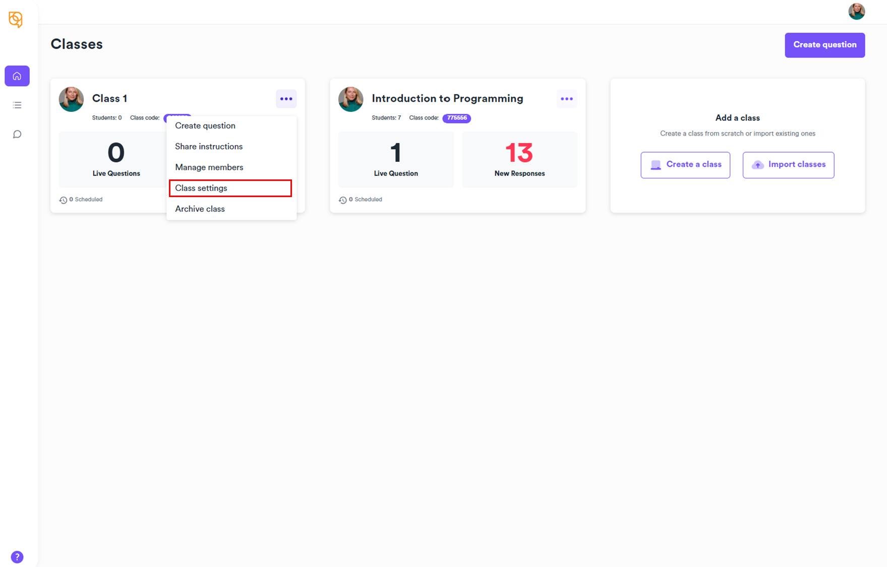 - Click on the three dots on the top right of your class and choose Class settings.