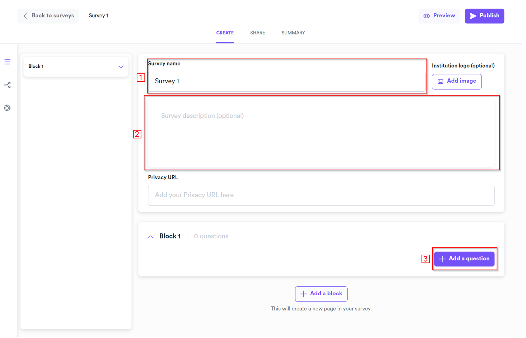 - Then write a short description of your survey. We suggest the description should cover these important points: