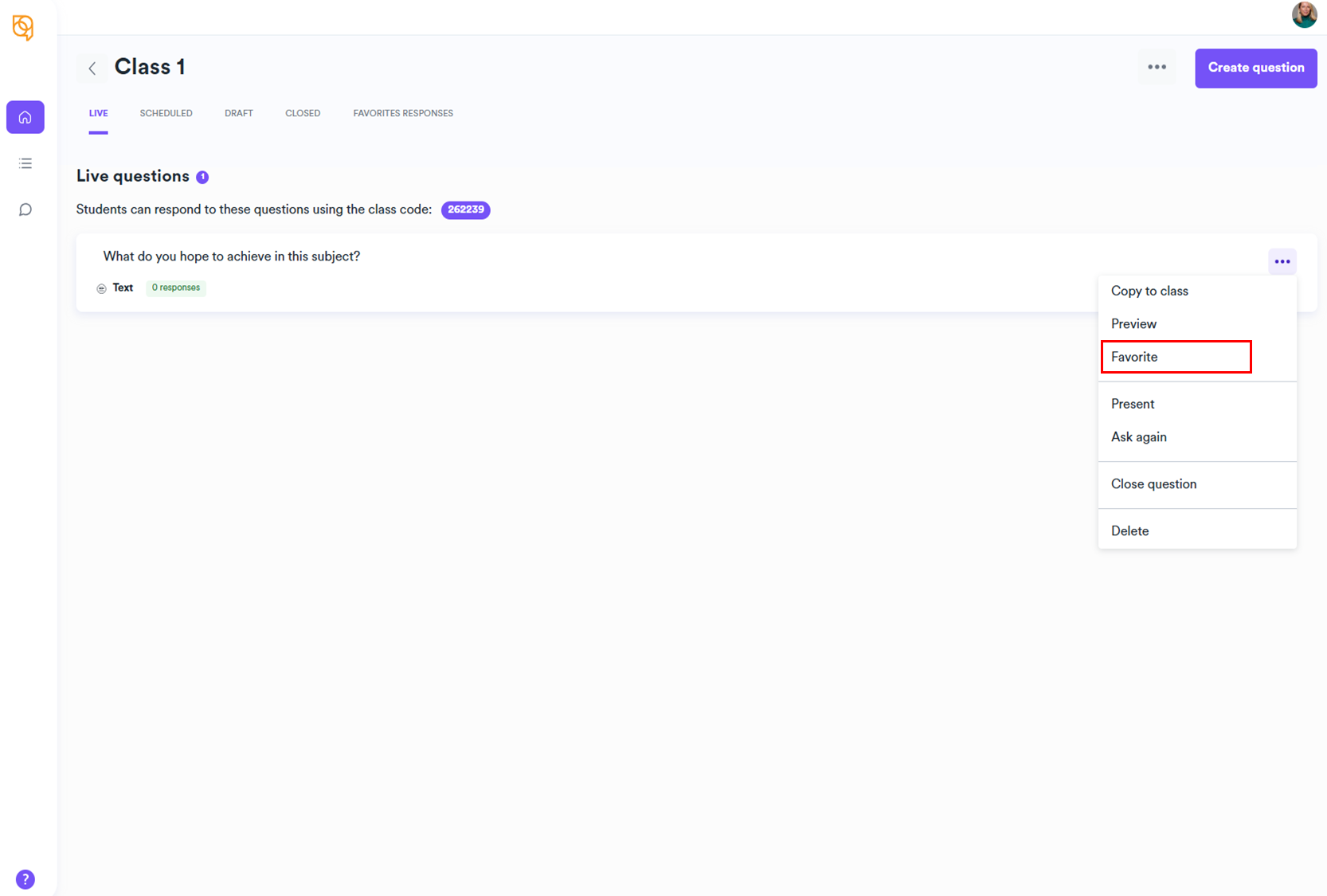 Favoriting a question will add it to the Favourites folder in the Question menu, allowing for quick access in the future.